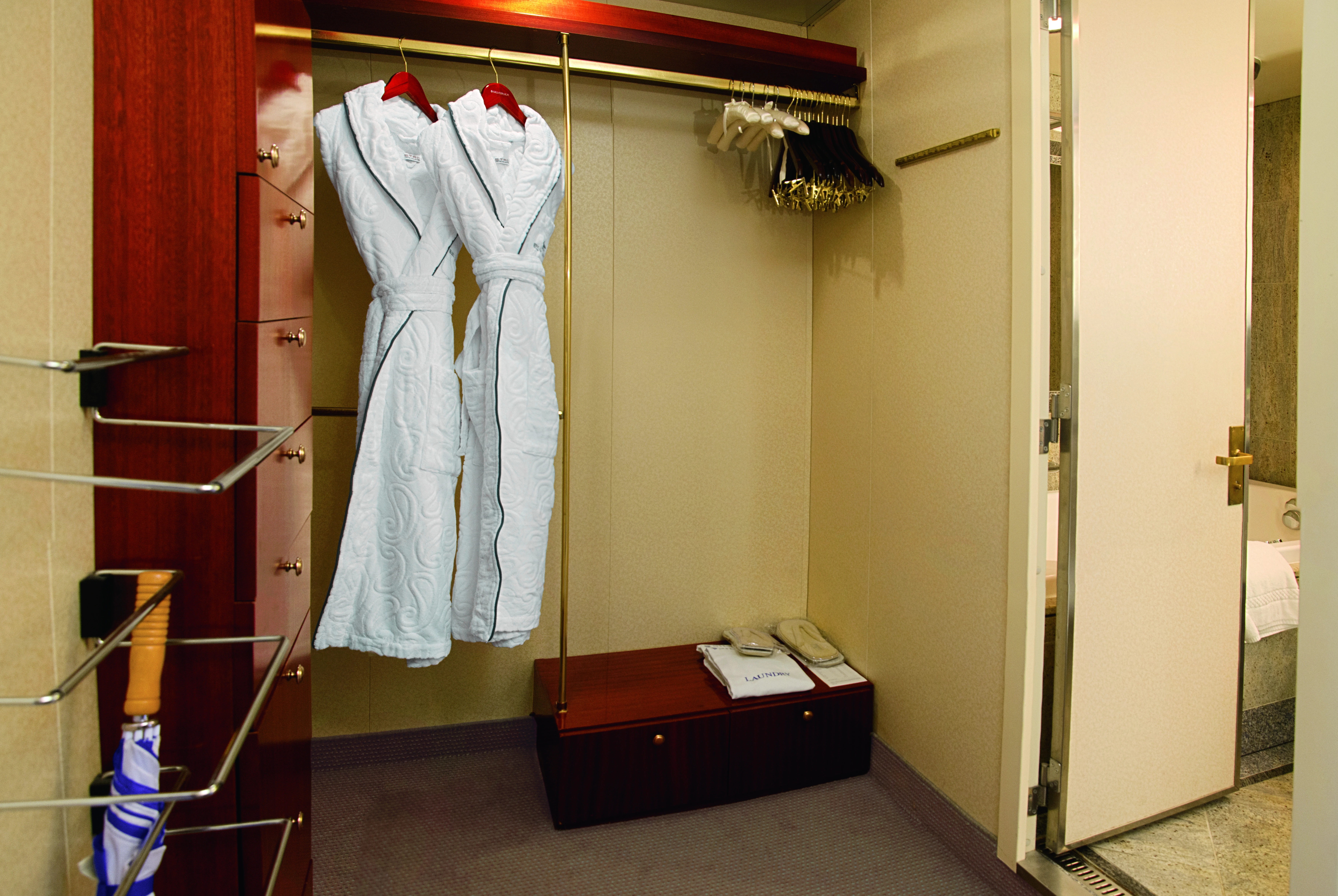 Etro Bathrobes and Slippers: After you gaze in wonder at the spaciousness of the walk-in closet in your suite, you'll probably be tempted to wrap yourself in the plush Etro Bathrobe and slippers you'll find there.
